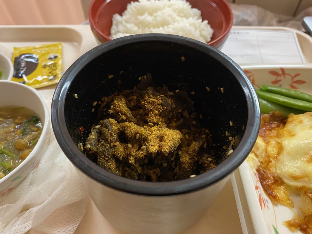 晚饭加餐😄,大半盆香辣牛肉块就着热米饭吞下肚肠,药物反应被狼吞虎咽的兴奋感压制得服服帖帖。